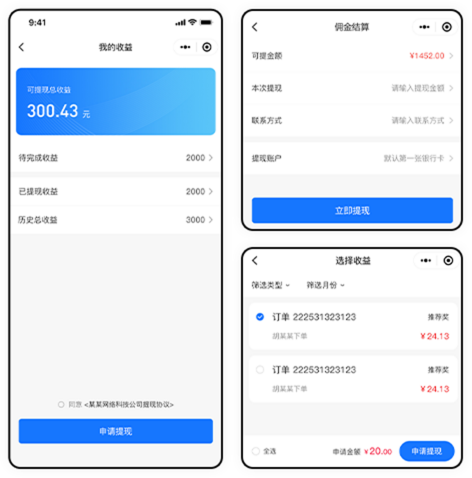 实时了解分润账单,随时提现分润资金