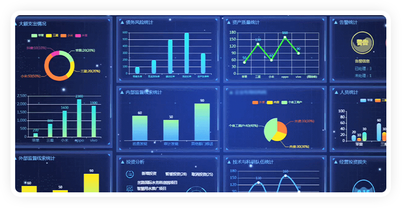 一个高效、先进的数据大屏展示企业技术实力, 提升企业形象,同时作为智慧运维指挥中心,提 高运维效率